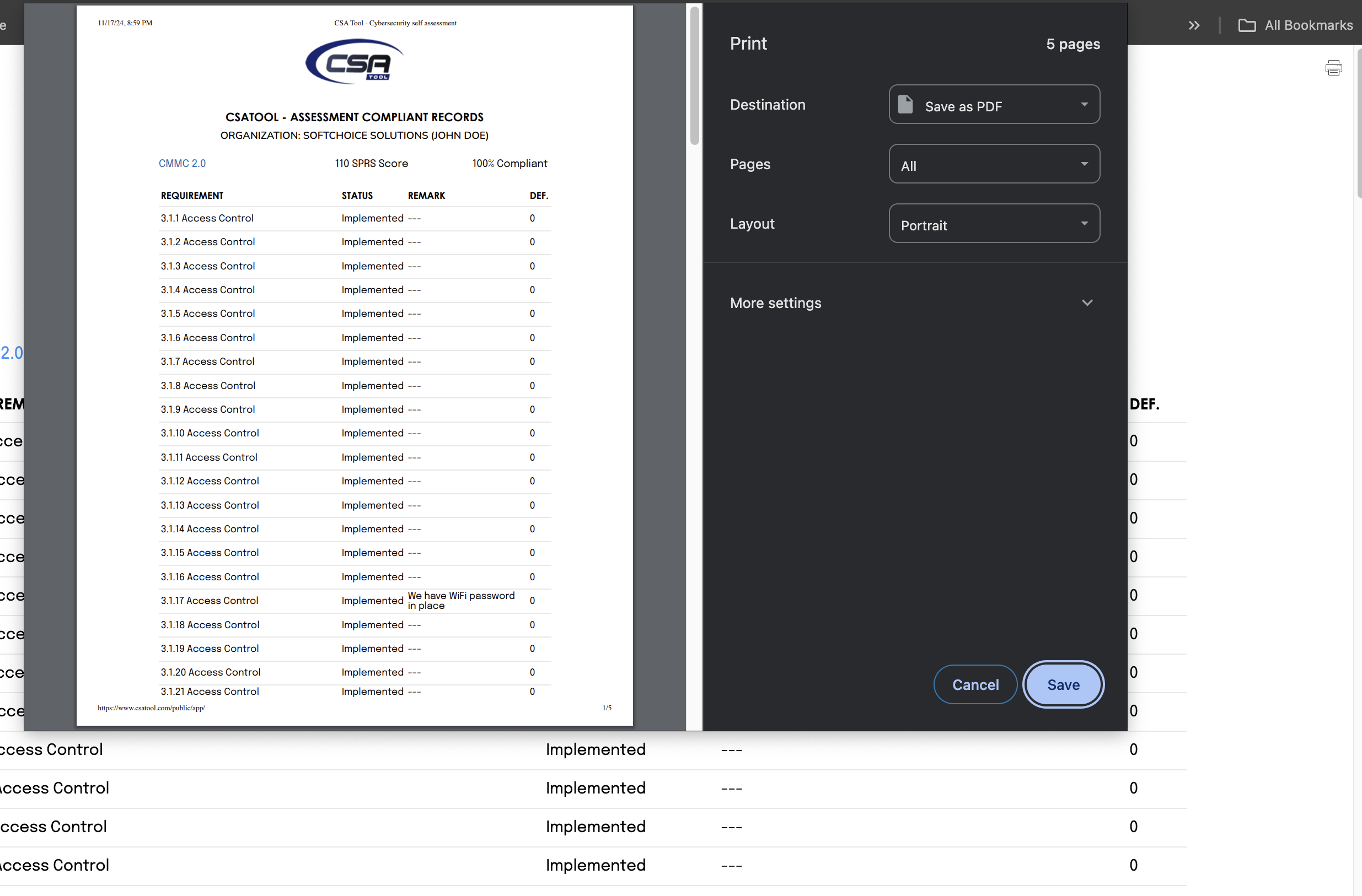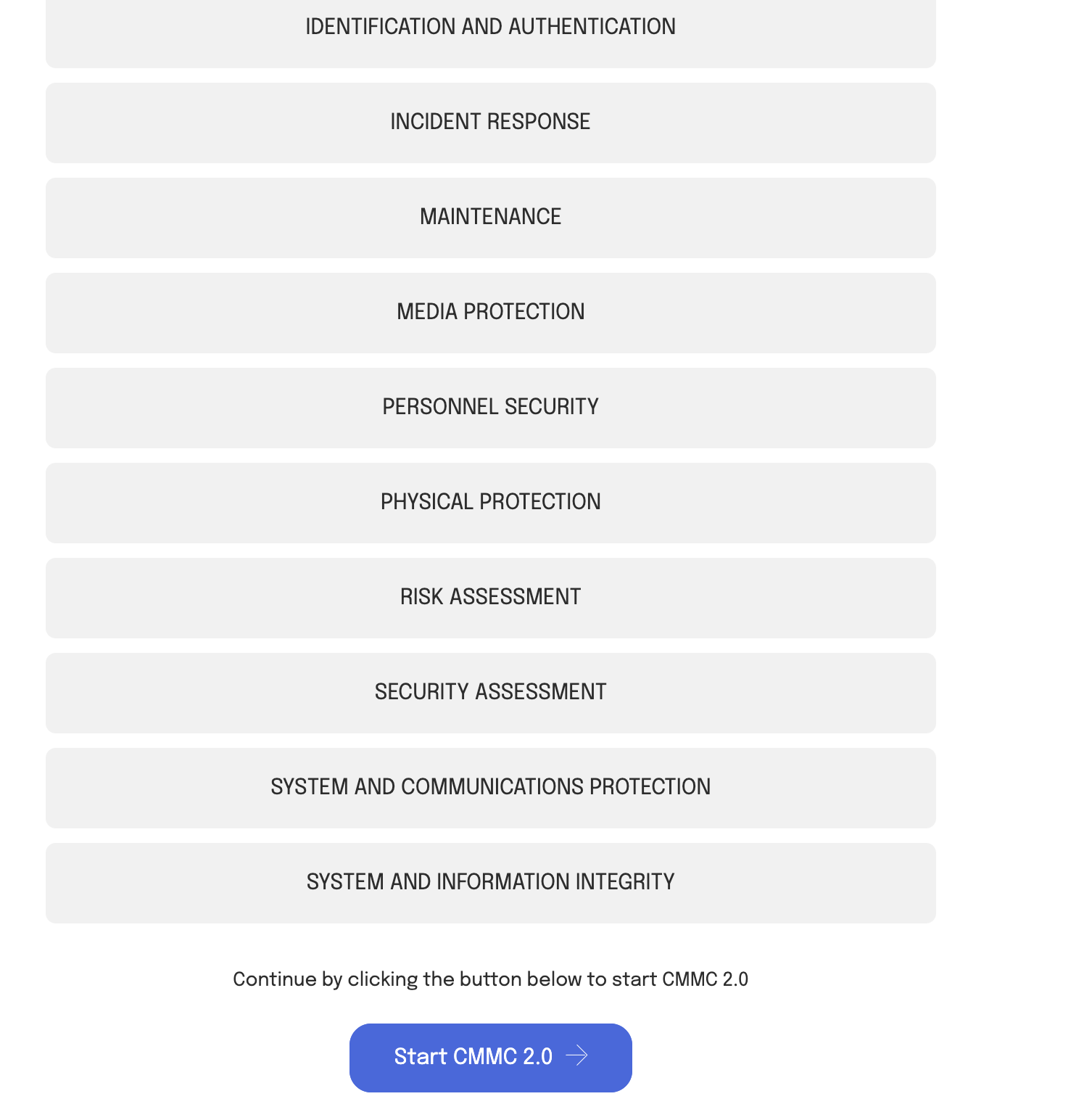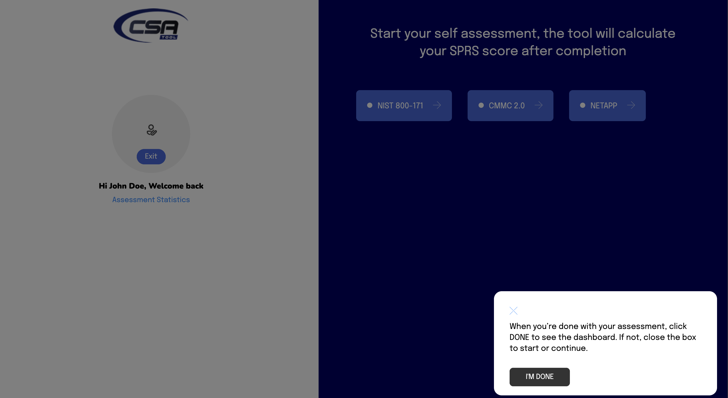 Select the cybersecurity standard/Framework you want to assess your organization for, eg CMMC for government contractors.