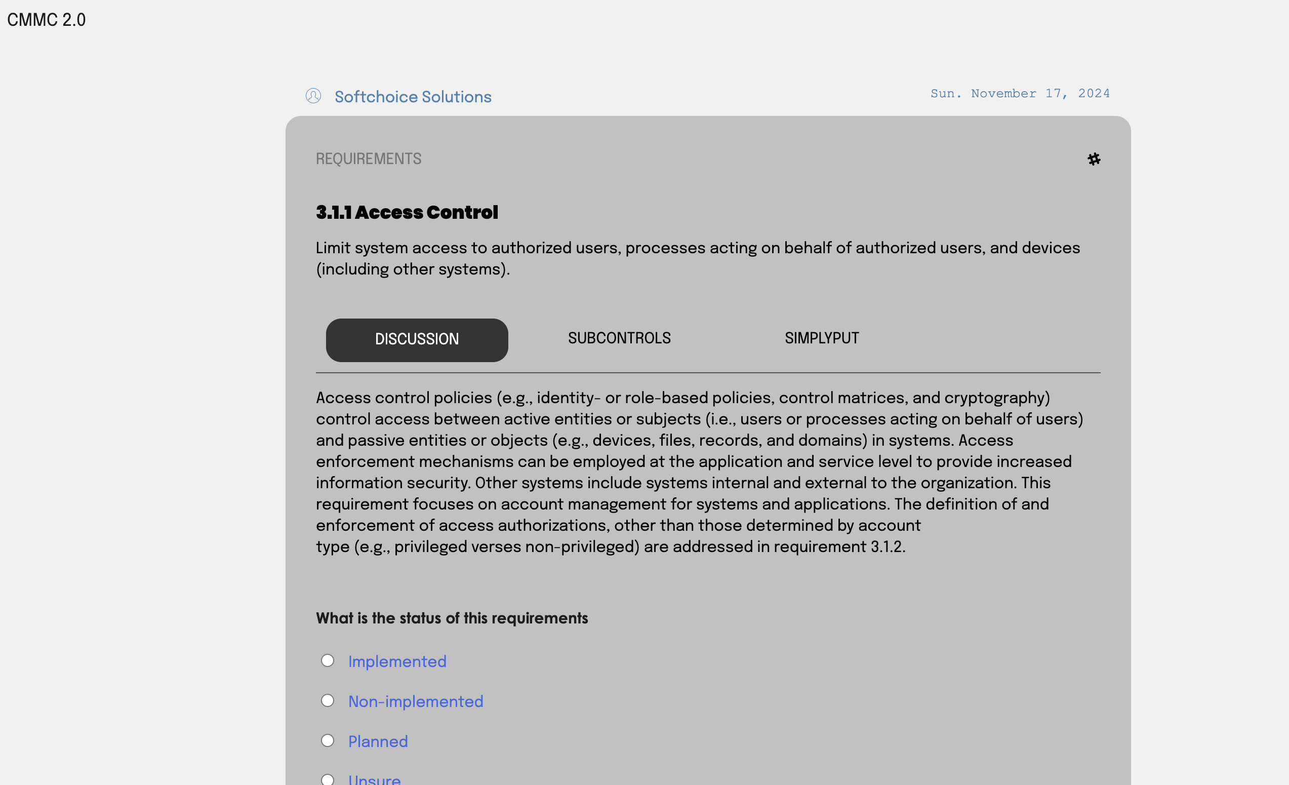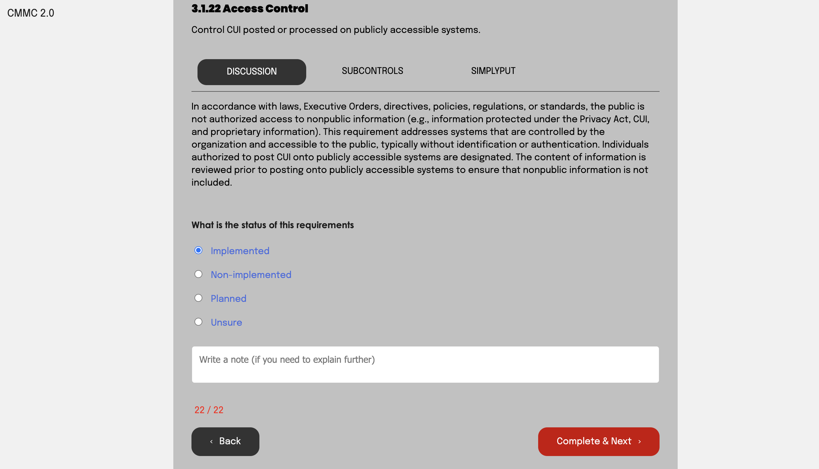 If you do not understand what the requirements are or what the control (question) is asking about, select Unsure and add comments. If you have it as part of your plan to implement any of the subcontrols, select planned and add note.