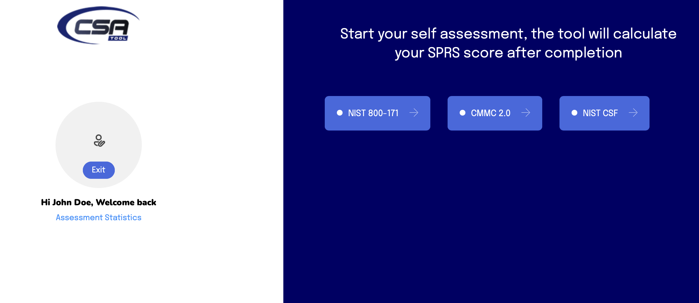 Welcome to your new CSATool Cybersecurity self assessment Tool for your CMMC, NIST 800-171 and CSF self assessment.
